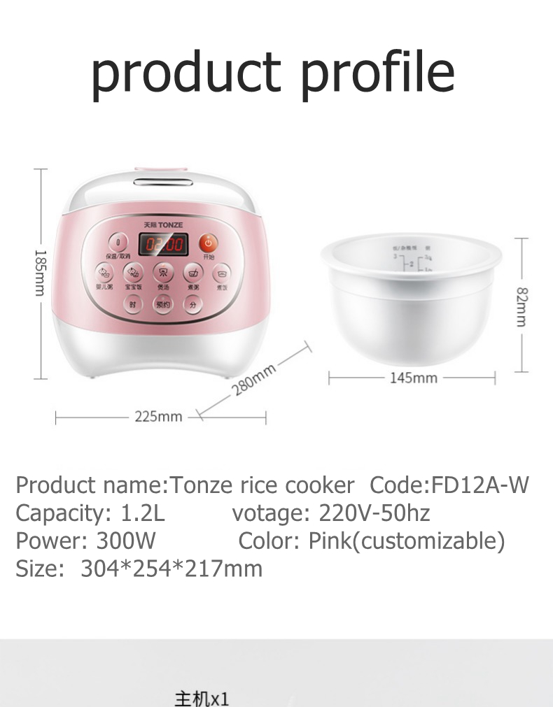 1.2L TONZE Ceramic Slow Cooker, 300W, BPA-Free, Easy Clean, Multi-Function, OEM Supported
